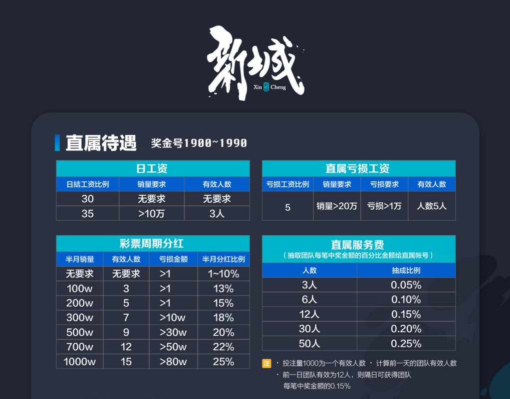 新城提供2种模式 默认无分红1990+30+半月私贩一万20 分红模式为1990+30+10%半月分红 要换半月分红10%模式,请再玩之前联系小明更换 。有tou住数据后不支持更改,之后也只能1号跟16号换模式 新城30工资是系统自动日结